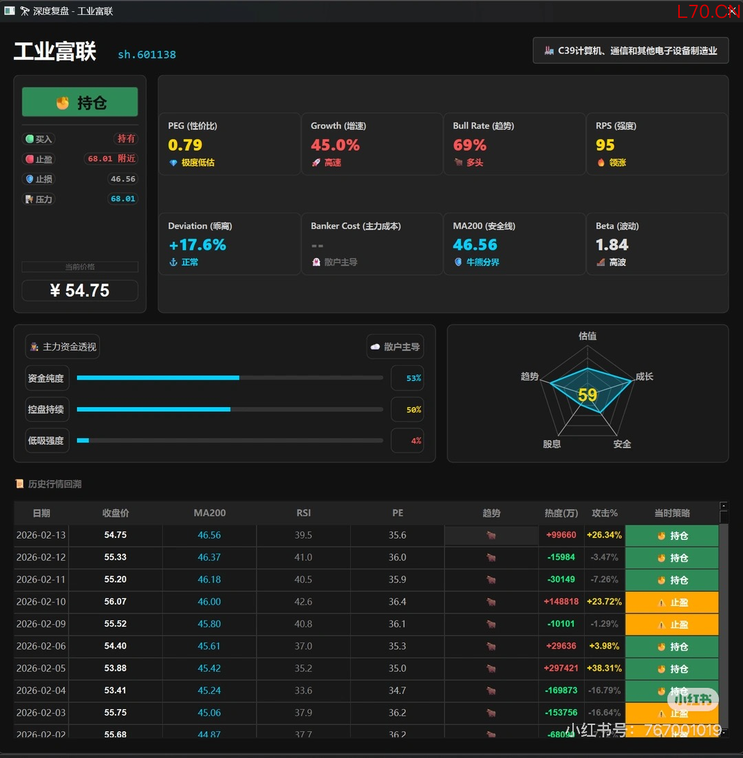 表明其走势高度依赖板块(AI/算力)的贝塔收益。这说明工业富联已经完全被市场视作 “AI 板块的 ETF”。它不仅仅是个股,更是资金进出 AI 板块的通道。