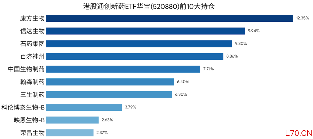 根据最新数据,港股通创新药ETF华宝(520880)目前持有约50家港股创新药公司,百济神州、信达生物、康方生物等核心创新药标的,都是其前5大重仓股。