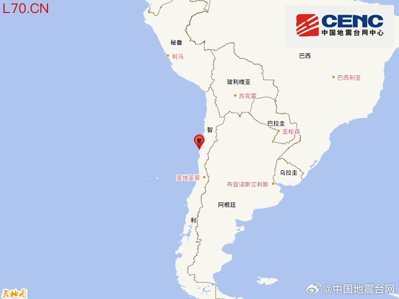 智利北部附近海域发生6.3级地震,震源深度20千米