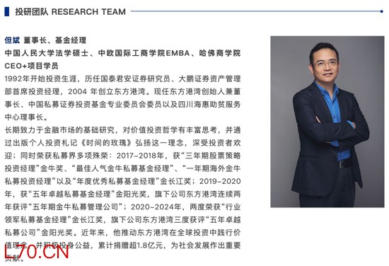 元股证券深圳东方港湾投资管理股份有限公司成立于2004年3月,是国内最早成立的私募基金公司之一。澎湃新闻记者查阅东方港湾官网信息发现,但斌为该公司董事长、基金经理。作为东方港湾的创始人,但斌倡导价值投资,著有《时间的玫瑰》,更为大众熟知的是贵州茅台“铁粉”的身份。