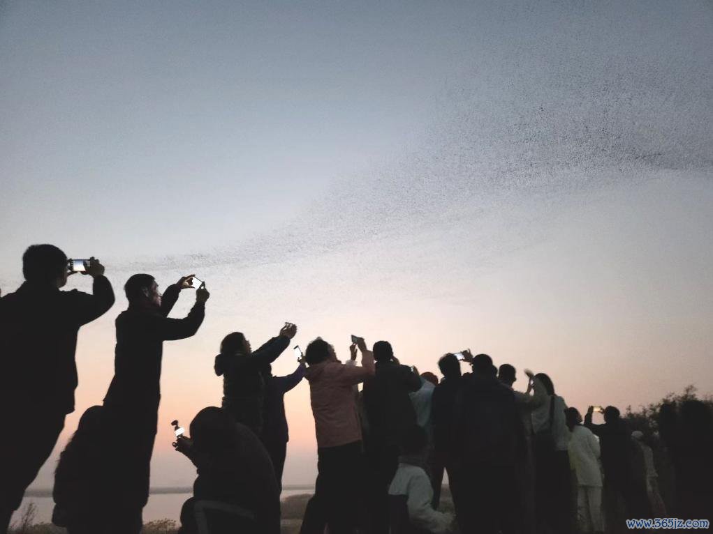 游客在拍摄“鸟浪”奇观。新华社发