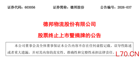 3月25日晚间,德邦股份(603056)公告称,公司于3月24日收到上交所《关于德邦物流股份有限公司股票终止上市的决定》,上交所决定终止公司股票上市。